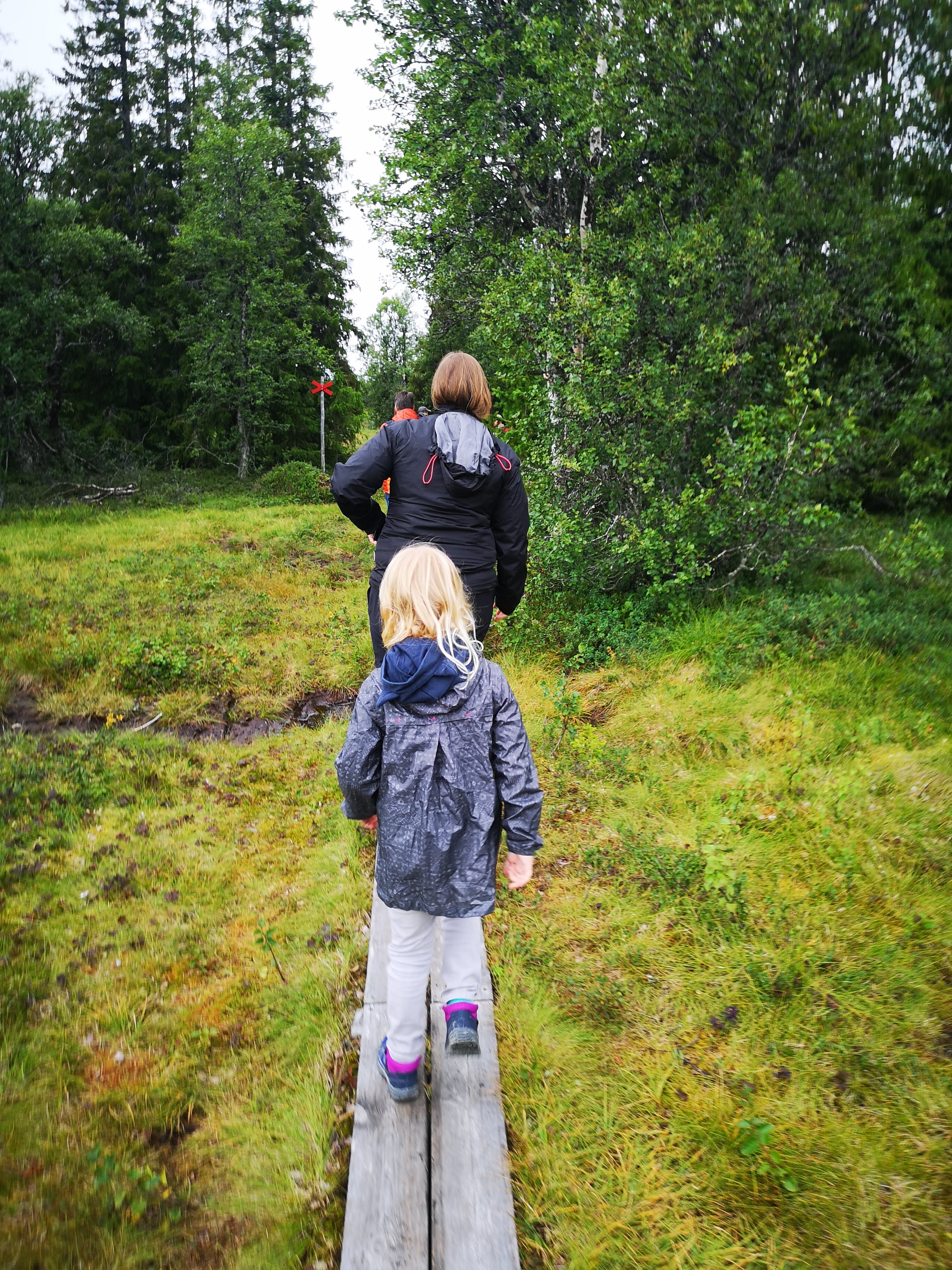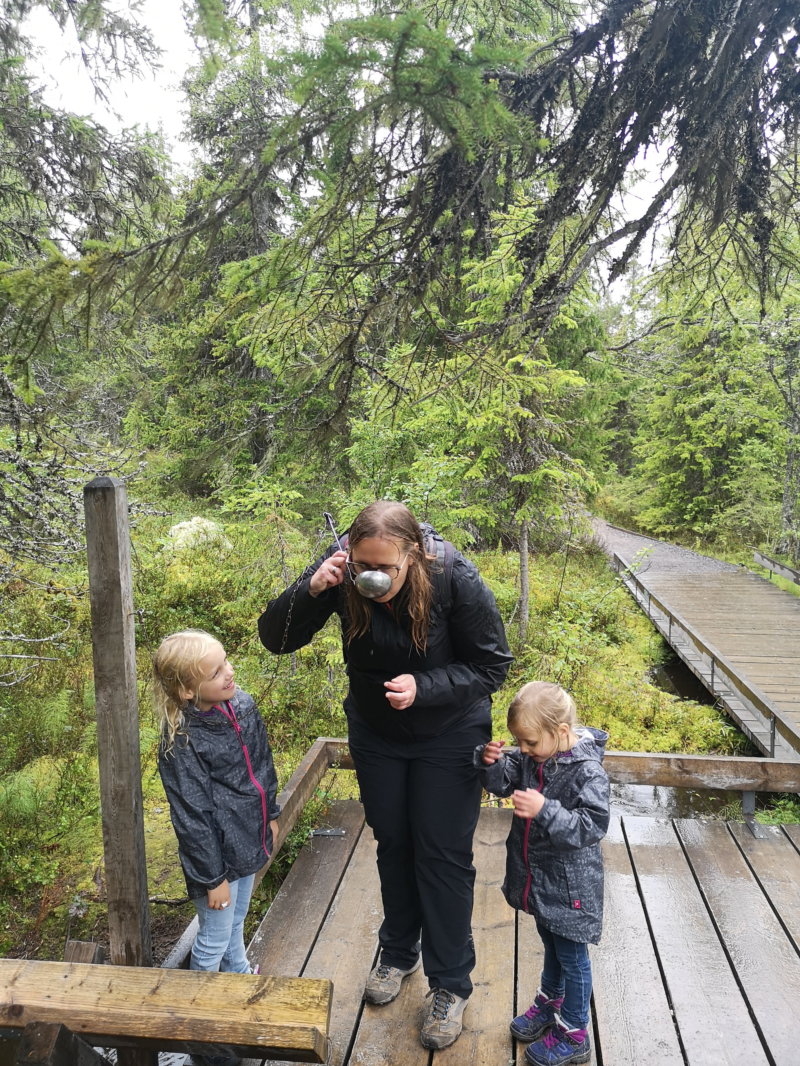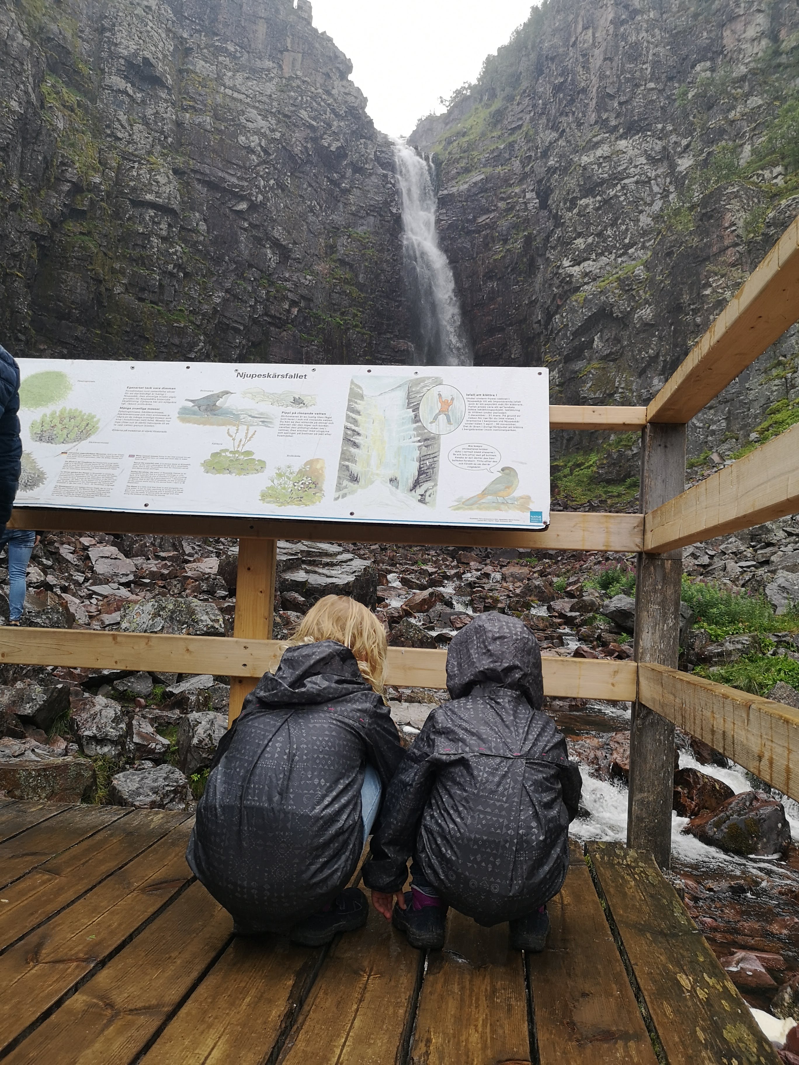Onze laatste volle dag in Zweden was de kers op de taart. We trokken naar Fulufjällets Nationalpark waar we gingen wandelen naar de grootste waterval van Europa. Er zijn verschillende hiking tours, maar wij volgden de kortste van 4 km vooral omdat het de bedoeling was dat de kindjes deze volledig zelf gingen wandelen. We volgden de Njupeskärsslingan hiking tour waarbij op ongeveer halfweg de wandeling de Njupeskär waterval staat wat dus de grootste waterval van Europa is. Ik ben zot van watervallen, dus voor mij was het echt een topmoment. De wandeling zelf was heel goed doenbaar met de kindjes. We moesten een paar keer (stevig) klimmen en op de terugweg wat moeilijkere dalingen (voor de kindjes dan), maar al bij al een gemakkelijke weg. En we zijn heel fier om te zeggen dat ze de 4 km volledig zelf gewandeld hebben. Niet evident met het regenweer en vooral voor onze 4-jarige, een stevige wandeling. De laatste km hebben we wel een ijsje moeten beloven :-). Onze reis in Zweden kon geen beter einde hebben. ’s avonds gingen we nog eten in de brasserie dicht aan ons huisje. Deze keer wel lekker gegeten :-). Na het eten hebben we nog een wanhoopspoging gedaan om een beer te kunnen spotten, onze gids van het berenhol had ons enkele tips gegeven, maar onze poging was helaas niet gelukt :-(. Daarna was het snel tijd om te gaan slapen, want we moesten ’s morgens heel vroeg vertrekken richting Oslo waar we onze boot naar Denemarken gingen nemen.