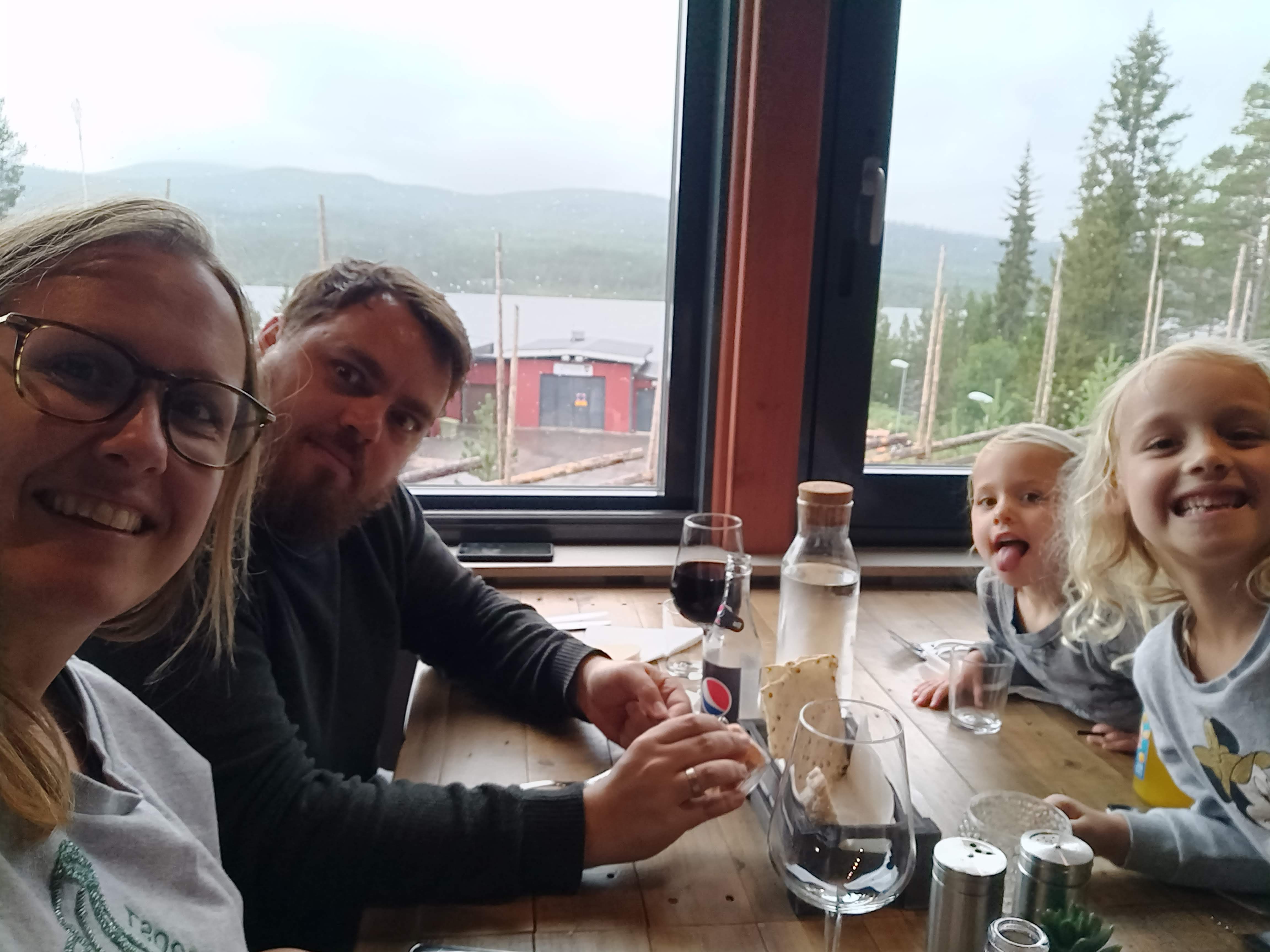 De volgende dag was het weer tijd om verder door te reizen naar het Noorden! Met een bang hartje want we wisten niet goed wat te verwachten. Onderweg kwamen we al onze eerste wilde diertjes tegen: rendieren op de weg 🙂 Zalig om te zien! En daar bleef het niet bij, we zagen zelfs een vos overlopen in volle dag. Toen we toekwamen waren we zeer aangenaam verrast. We dachten dat we in een redelijk primitieve afgelegen plek terecht gingen komen, maar in werkelijkheid logeerden we in een luxebungalow met een prachtig uitzicht. Zalig! We waren al van minuut 1 verkocht voor ons nieuwe verblijf. We moesten wel nog wat wennen aan het feit dat we in de middle of nowhere zaten en dat de plaatselijke winkel al om 18h dicht ging, dus avondeten deden we in de pizzeria in de buurt. Het was een pizzabuffet, zeker niet slecht, maar ook niet het beste wat ik al ooit gegeten had. Ik moet eigenlijk toegeven dat we in Zweden nooit echt lekker hebben gegeten wanneer we gingen uit eten. We keken altijd naar de reviews op google of tripadvisor en zelfs als we in de “beste” restaurantjes gingen eten viel het heel vaak tegen. We maakten dan ook meestal zelf eten, wat lekkerder en goedkoper was.
